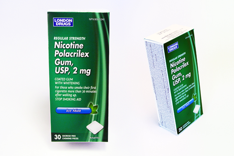 Illustration and Package Design for London Drugs nicotine gum following brand standards.